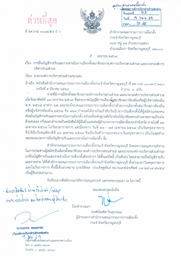 การยื่นบัญชีรายรับและรายจ่ายในการเลือกตั้งสมาชิกสภาองค์การบริหารส่วนตำบล และนายกองค์การบริหารส่วนตำบล