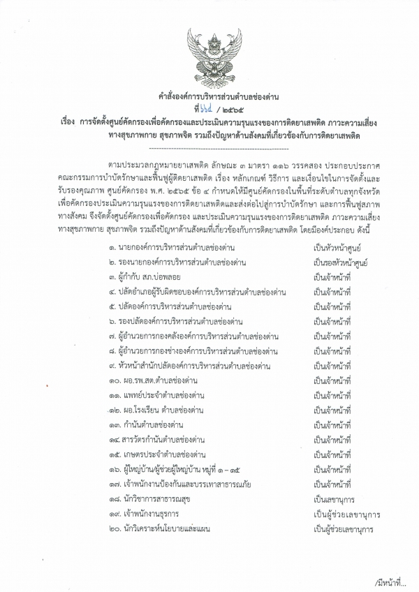 การจัดตั้งการจัดตั้งศูนย์คัดกรองเพื่อคัดกรองและประเมินความรุนแรงของการติดยาเสพติด