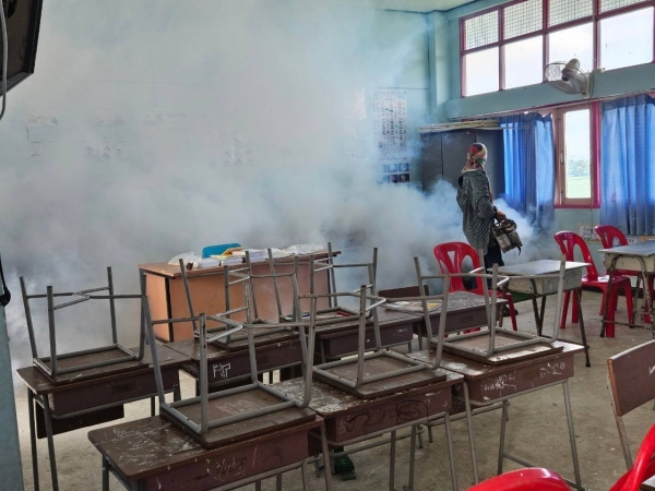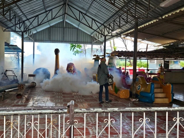 โครงการรณรงค์ป้องกันและควบคุมโรคไข้เลือดออก ประจำปีงบประมาณ พ.ศ.2567 (พ่นกำจัดแหล่ง เพาะพันธ์ลูกน้ำยุงลาย โรงเรียนบ้านสามยอด)