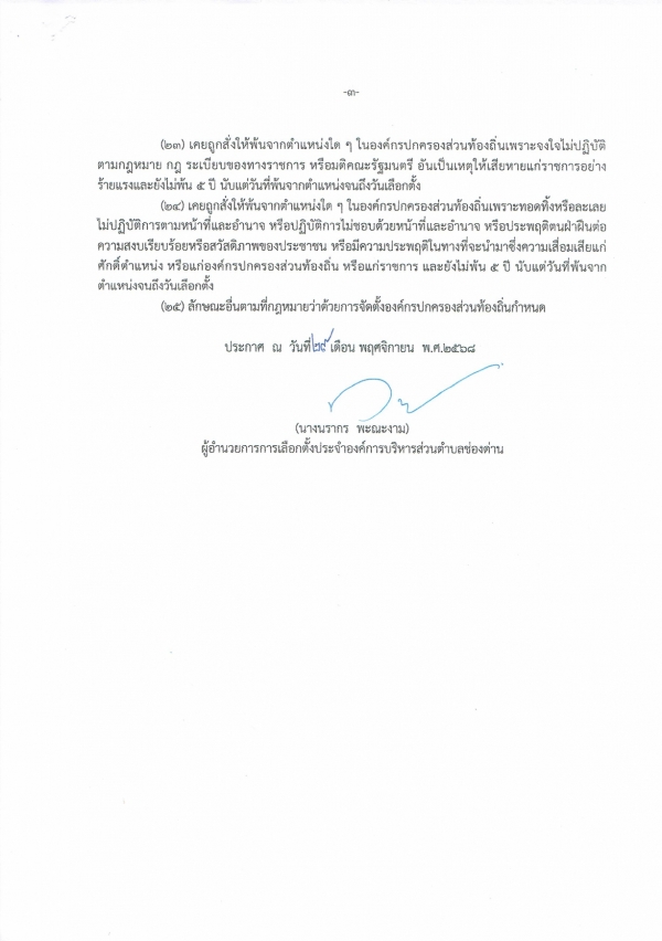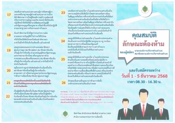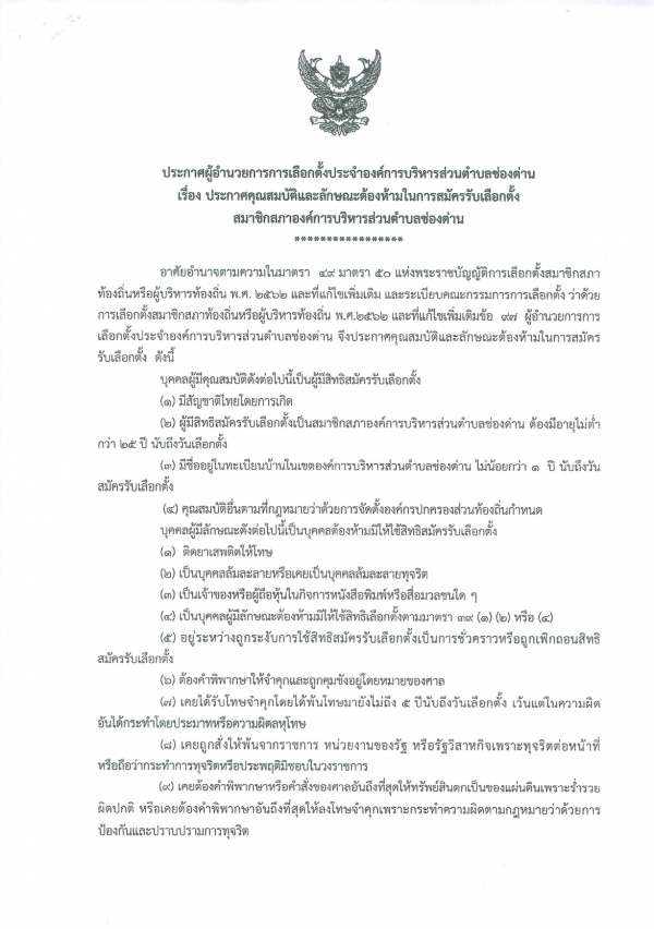ประกาศคุณสมบัติและลักษณะต้องห้ามในการรับสมัครรับเลือกตั้งสมาชิกสภาองค์การบริหารส่วนตำบลช่องด่าน