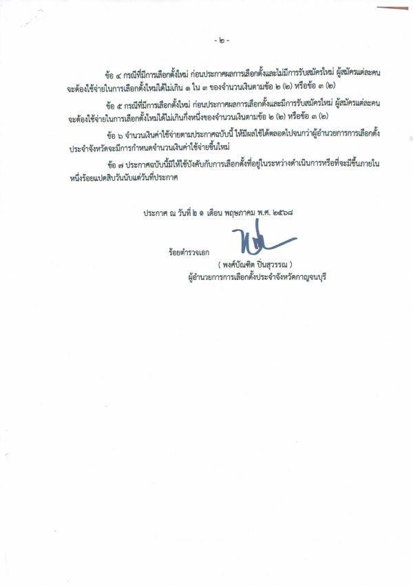 ประกาศผู้อำนวยการการเลือกตั้งประจำจังหวัดกาญจนบุรี เรื่อง กำหนดจำนวนเงินค่าใช้จ่ายในการเลือกตั้ง ของผู้สมัครรับเลือกตั้งเป็นนายก และสมาชิกสภาองค์การบริหารส่วนตำบล (ส.ถ./ผ.ถ. 1/12)