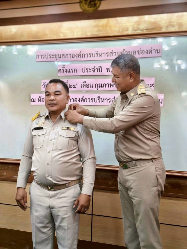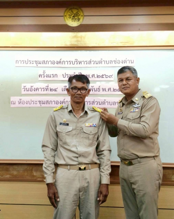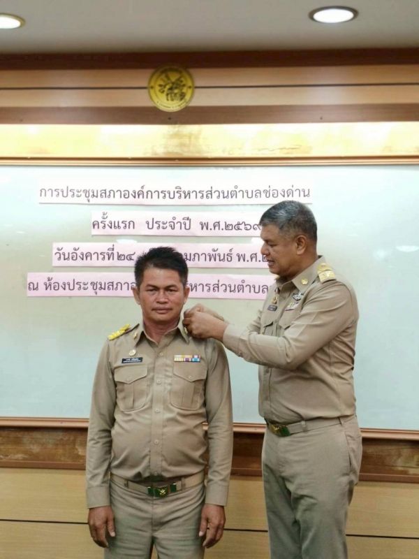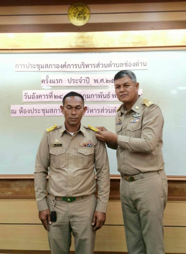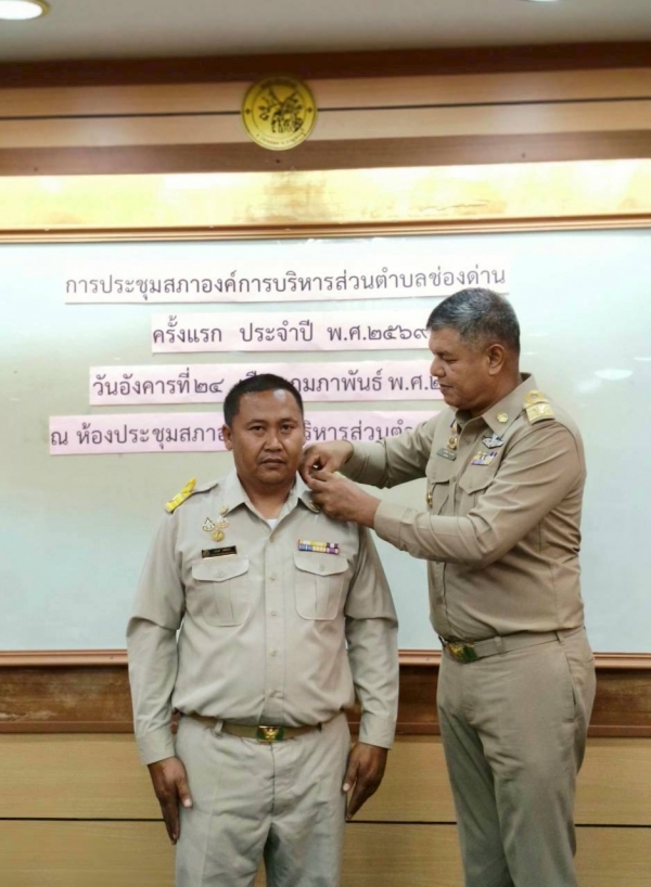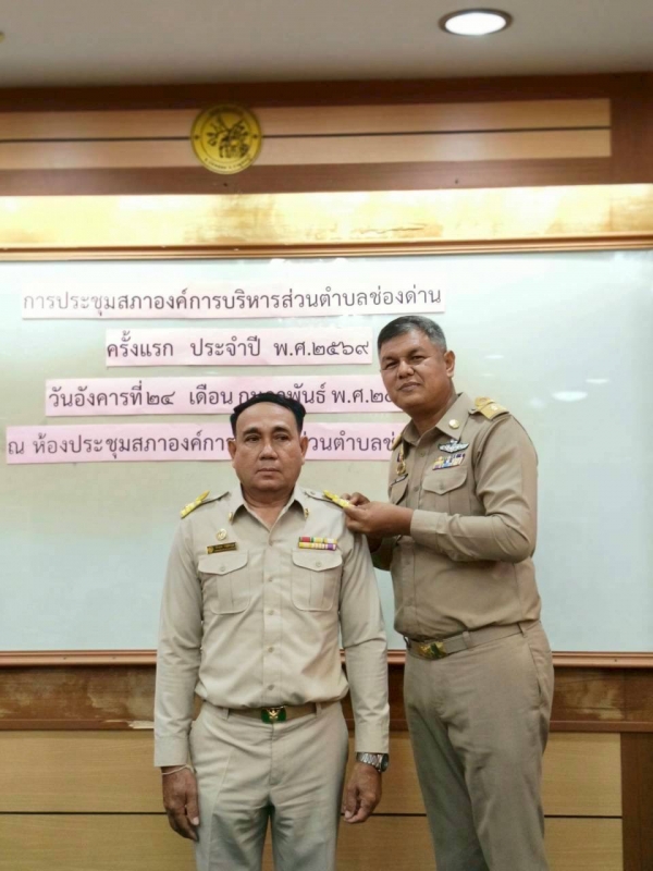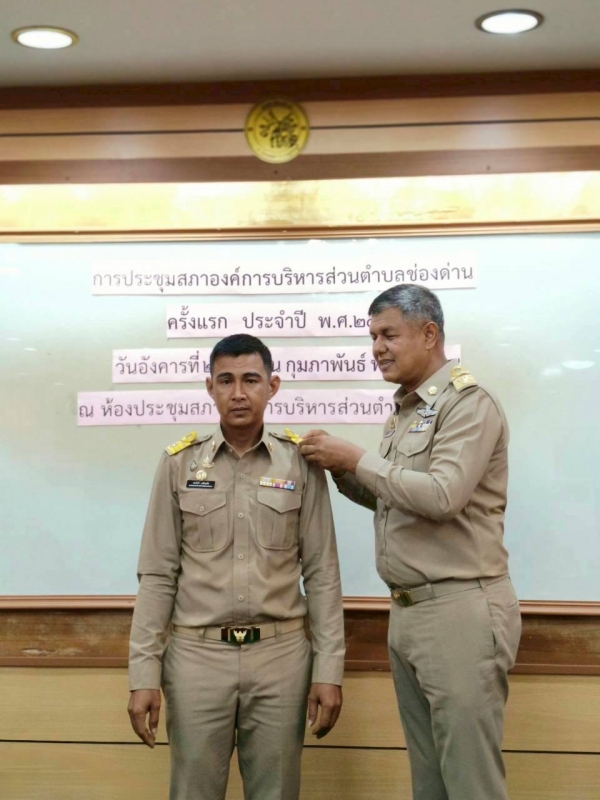 ในโอกาสดังกล่าว ได้ประกอบพิธีประดับขีดเครื่องหมายอินธนูแก่ นายกองค์การบริหารส่วนตำบลช่องด่าน รองนายกองค์การบริหารส่วนตำบลช่องด่าน